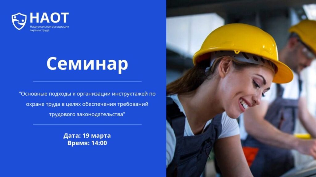 Ассоциация «Национальная ассоциация охраны труда» организует онлайн семинар на тему: «Основные подходы к организации инструктажей по охране труда в целях обеспечения требований трудового законодательства».